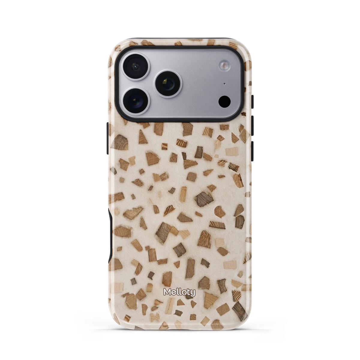 Scattered woodgrain fragments dance across a creamy canvas, capturing the warmth of nature in a modern terrazzo twist. Woodland Mosaic is a tactile ode to organic texture—inviting, grounded, and quietly stylish. Perfect for those who crave both calm and character.